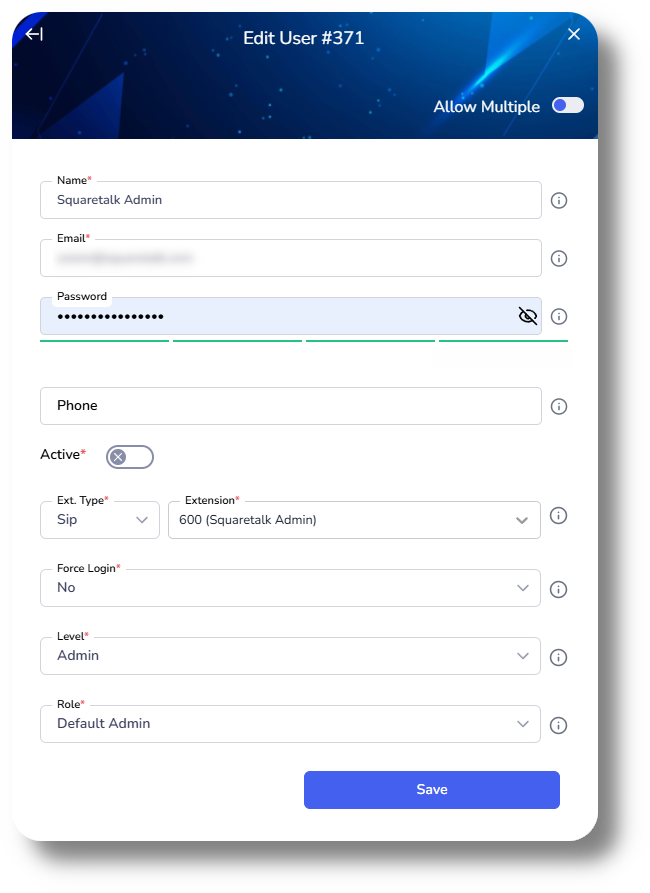 3. From the new window, you can edit the users Name, Email, Extension, Roles and more for each user.