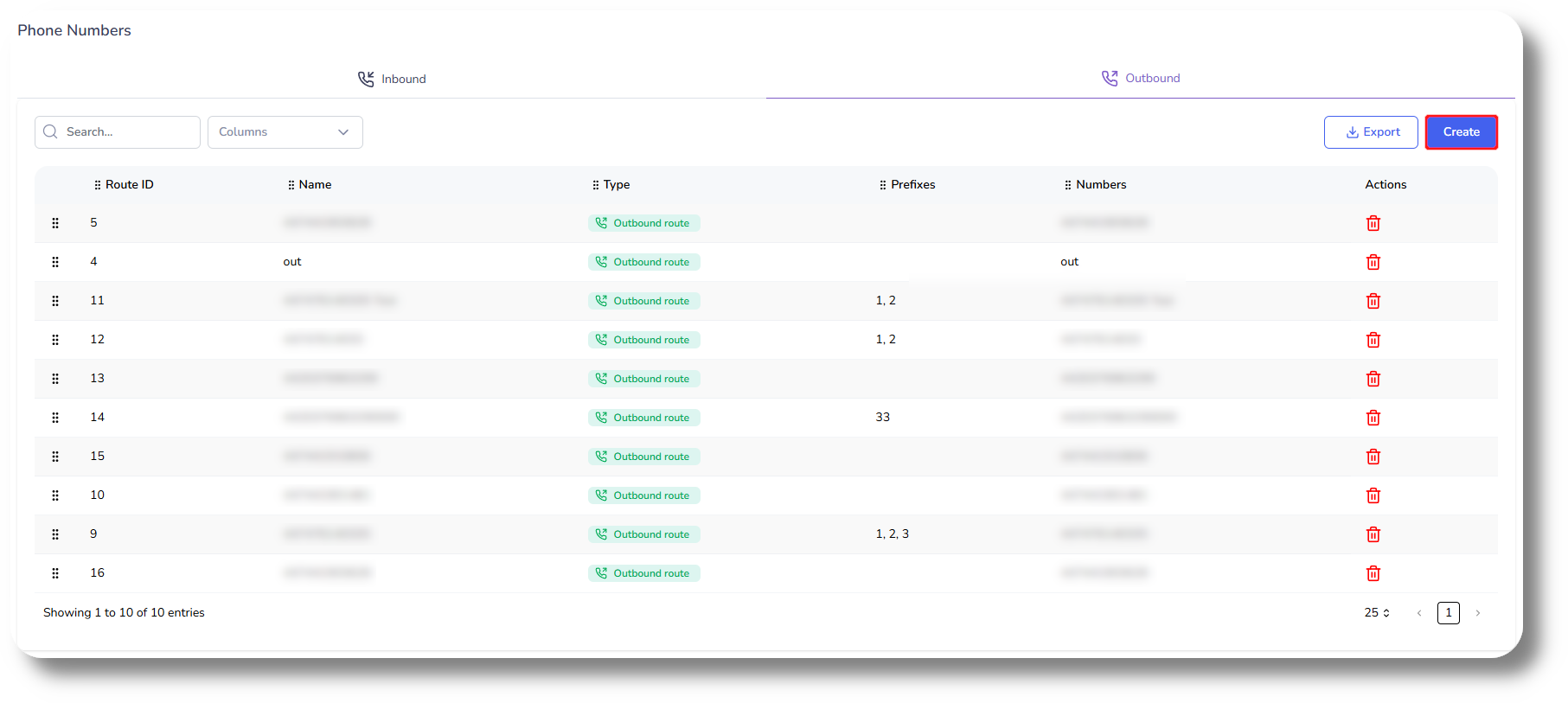 If you have multiple routes and numbers configured you can also set their priorities from the Outbound tab. To do so simply drag them higher or lower.