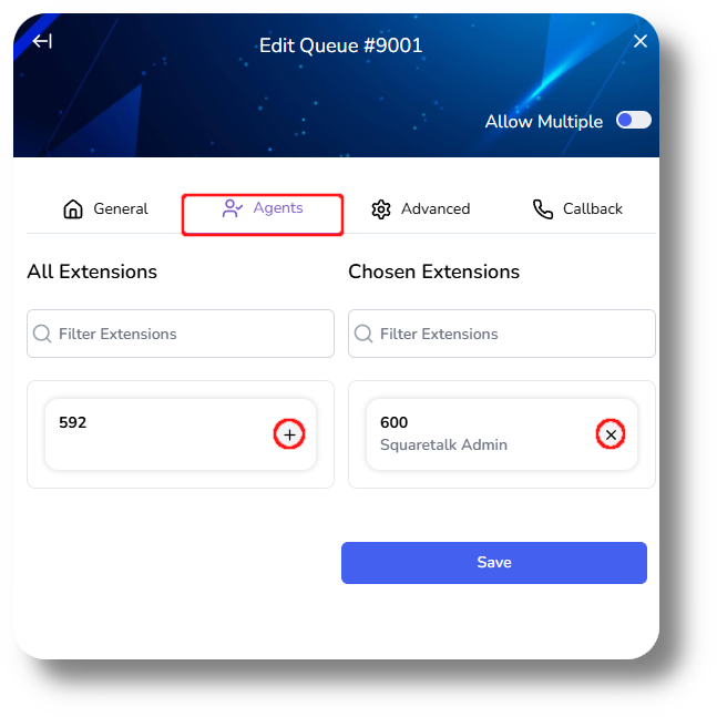 In order to add or remove agent(s) to the queue, please follow the steps below: