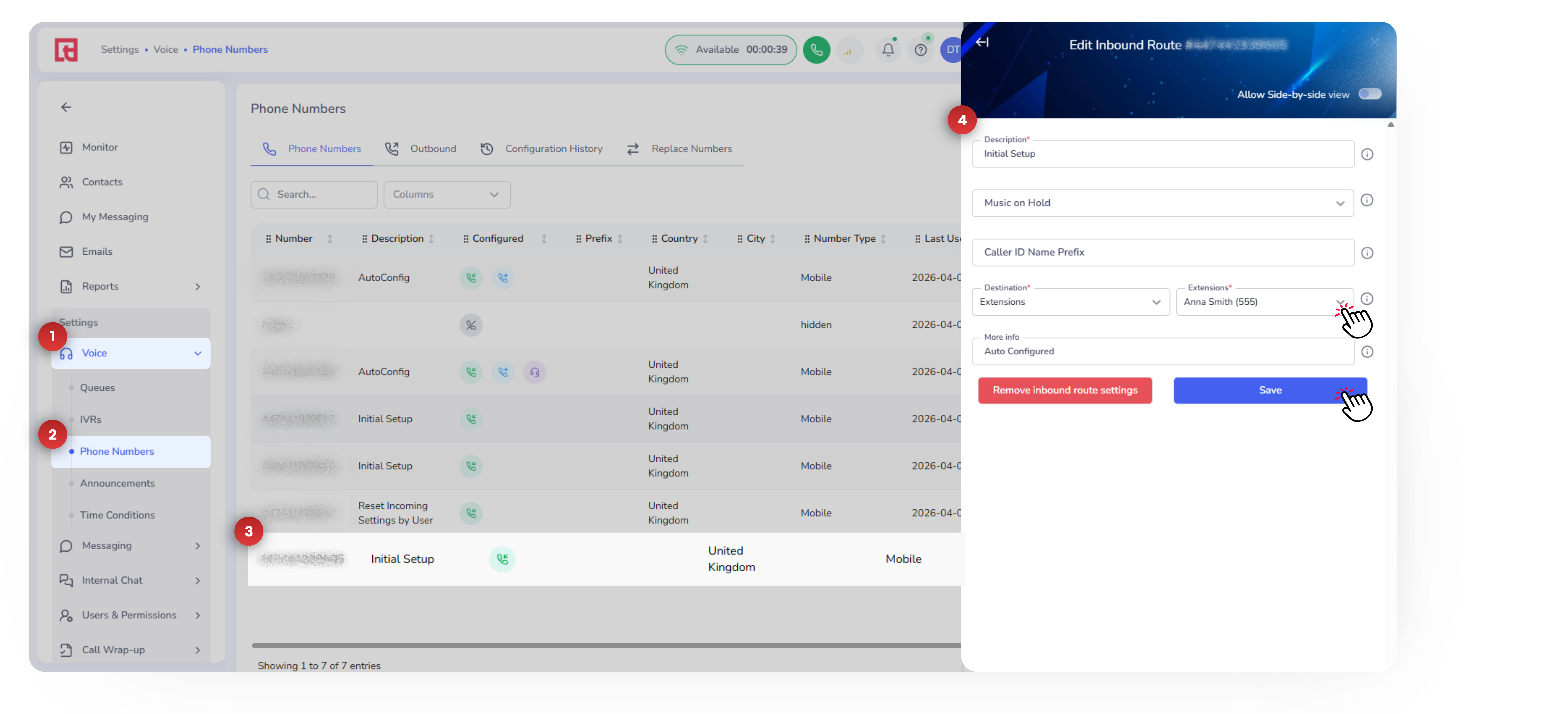 Log in to the Squaretalk Platform and go to Settings → Voice → Phone Numbers