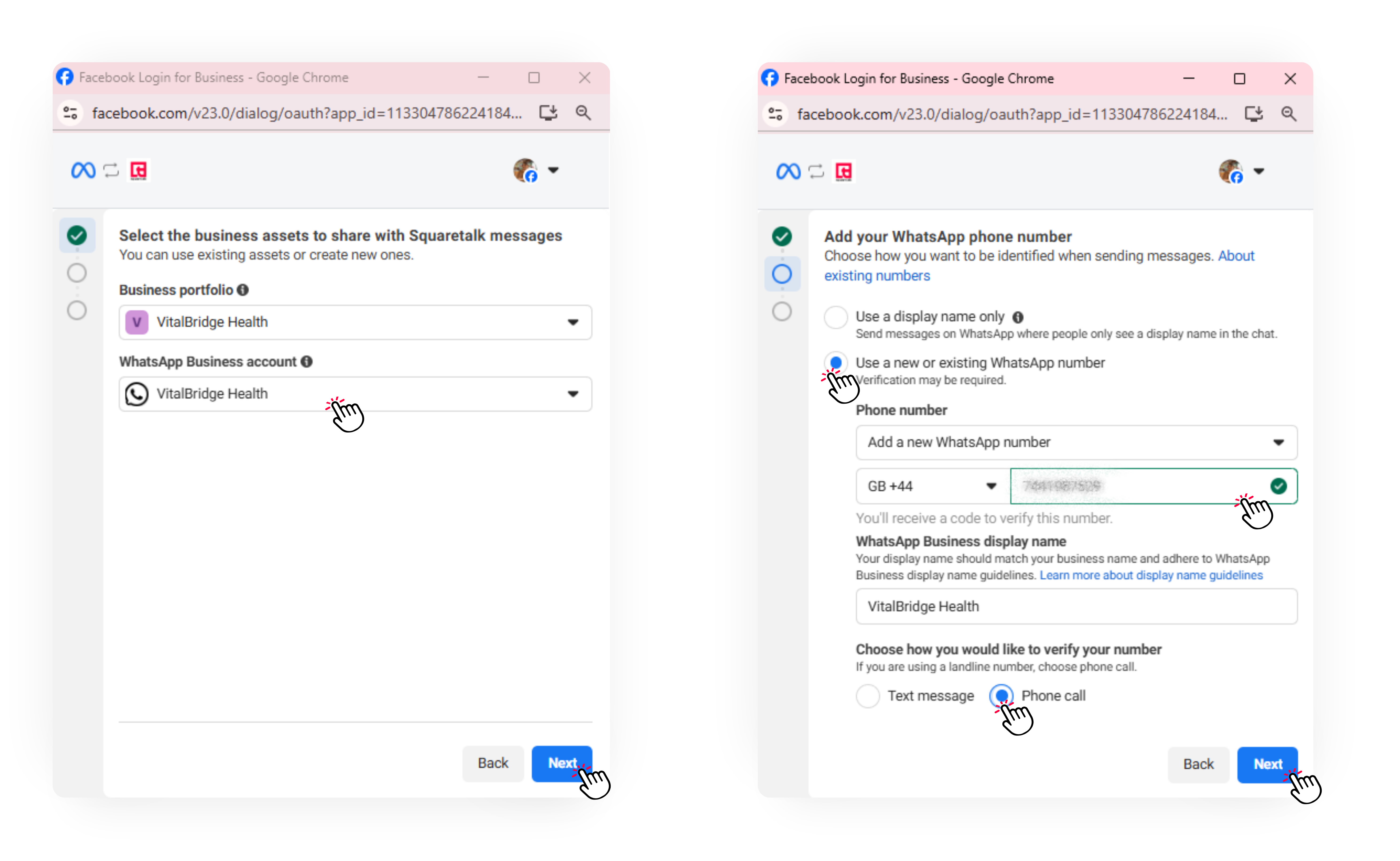 This process links your Squaretalk phone number to Meta’s WhatsApp ecosystem, allowing you to send and receive WhatsApp messages.