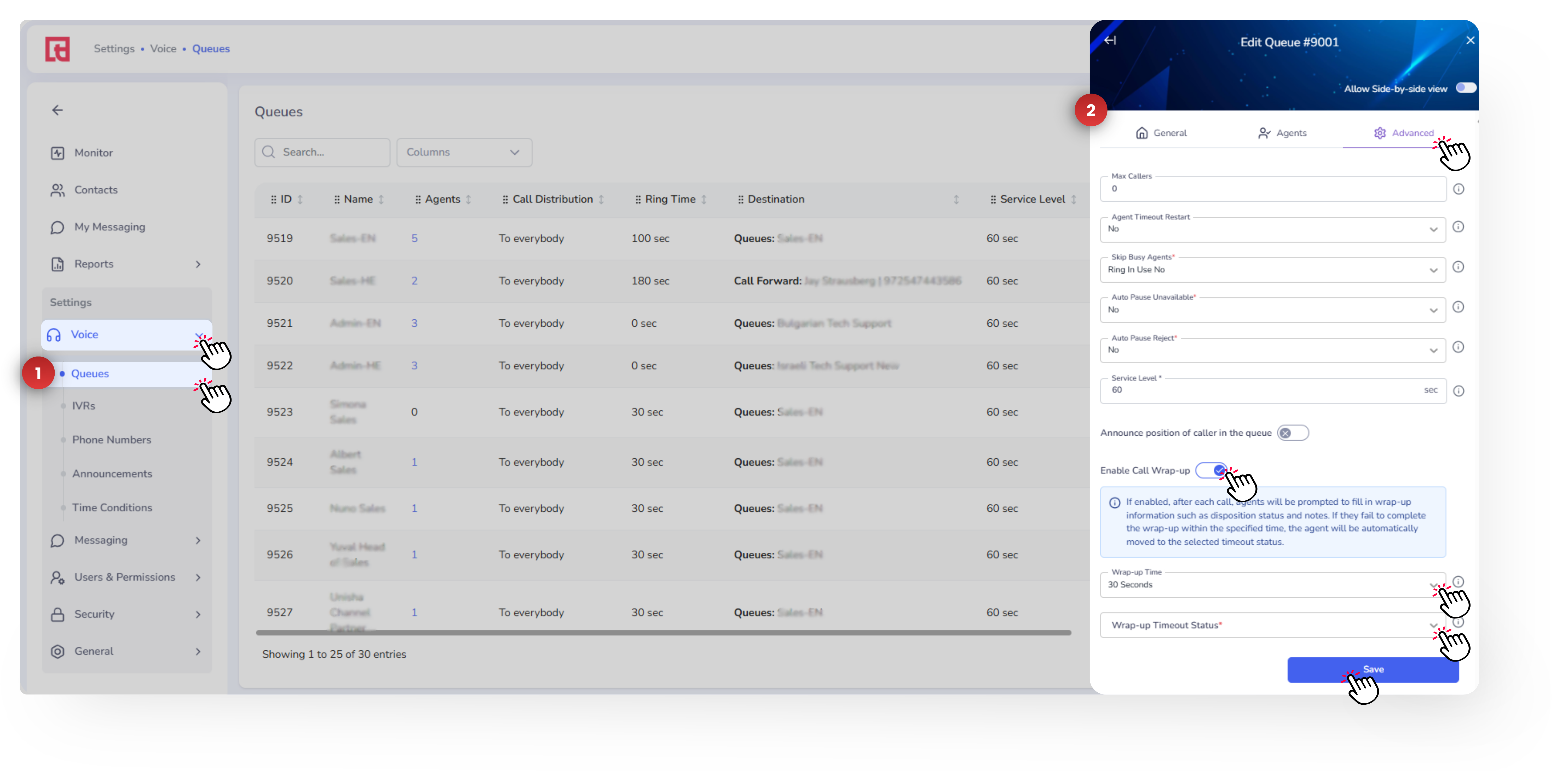 Call Wrap-Up is configured per queue, meaning each team can have its own wrap-up rules.
