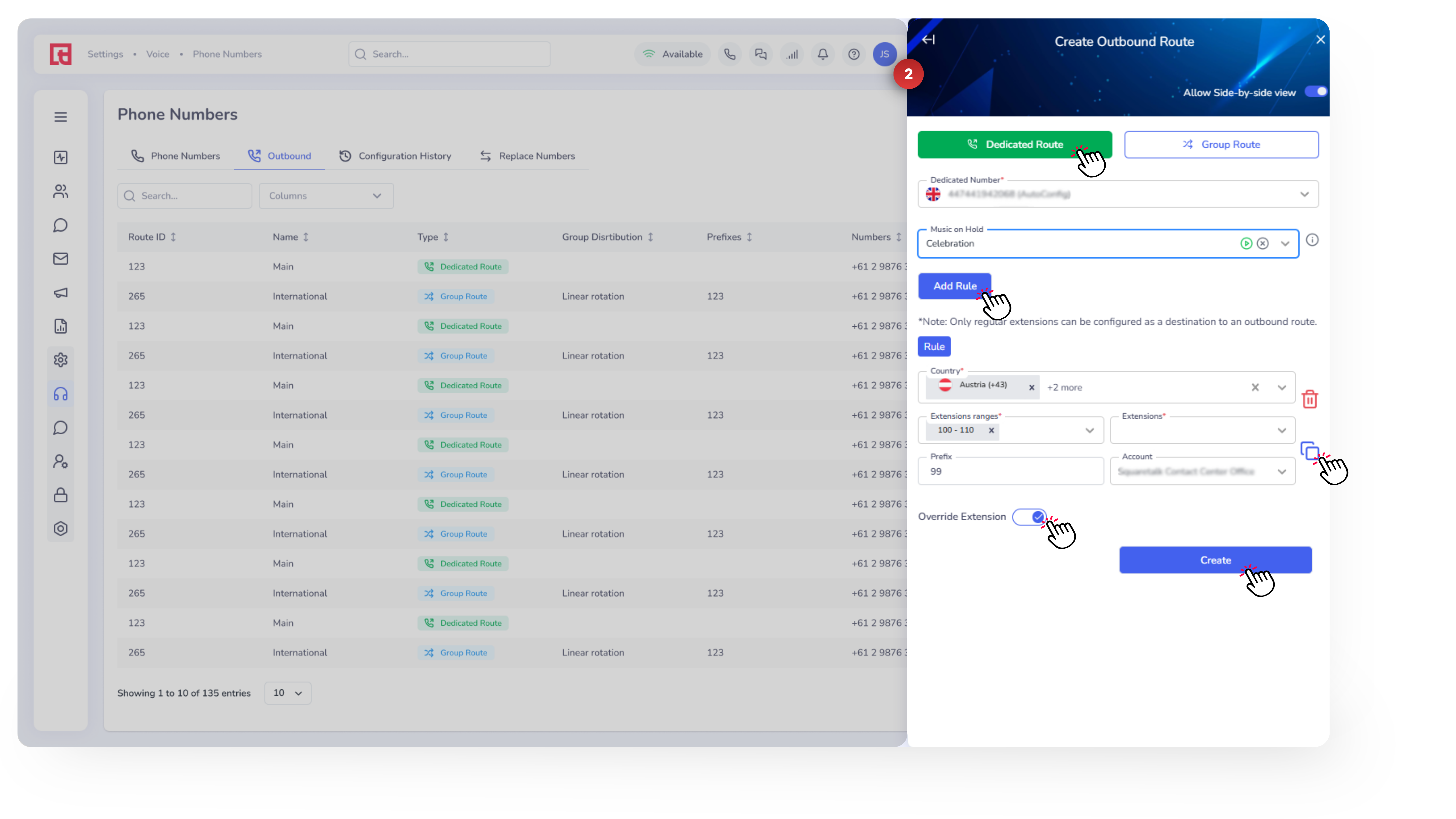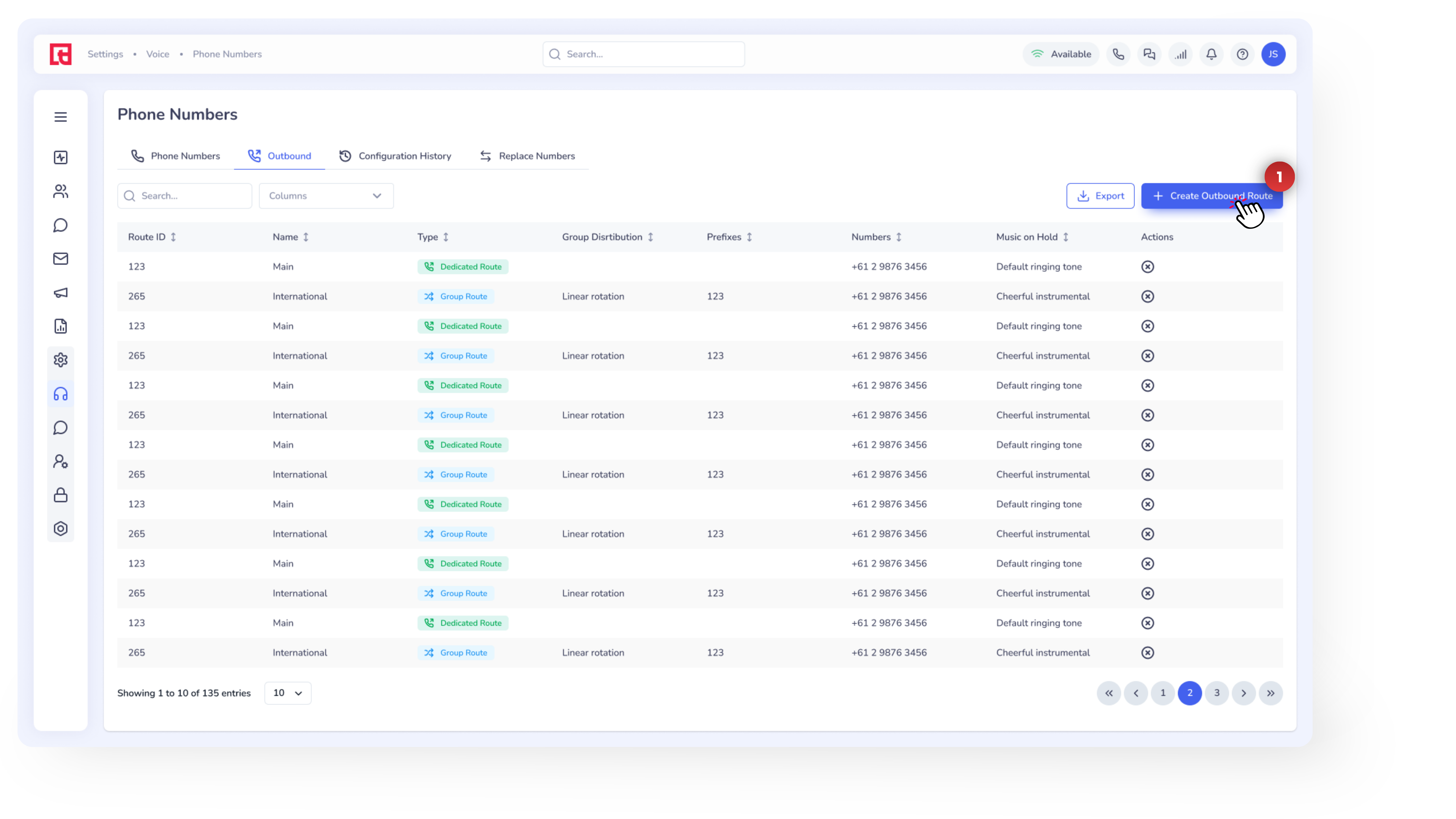 Quick Heads-Up: To edit an existing direct route, go to Settings → Voice → Phone Numbers → Outbound, then click on the route you want to update. A side panel will open where you can adjust the route settings.