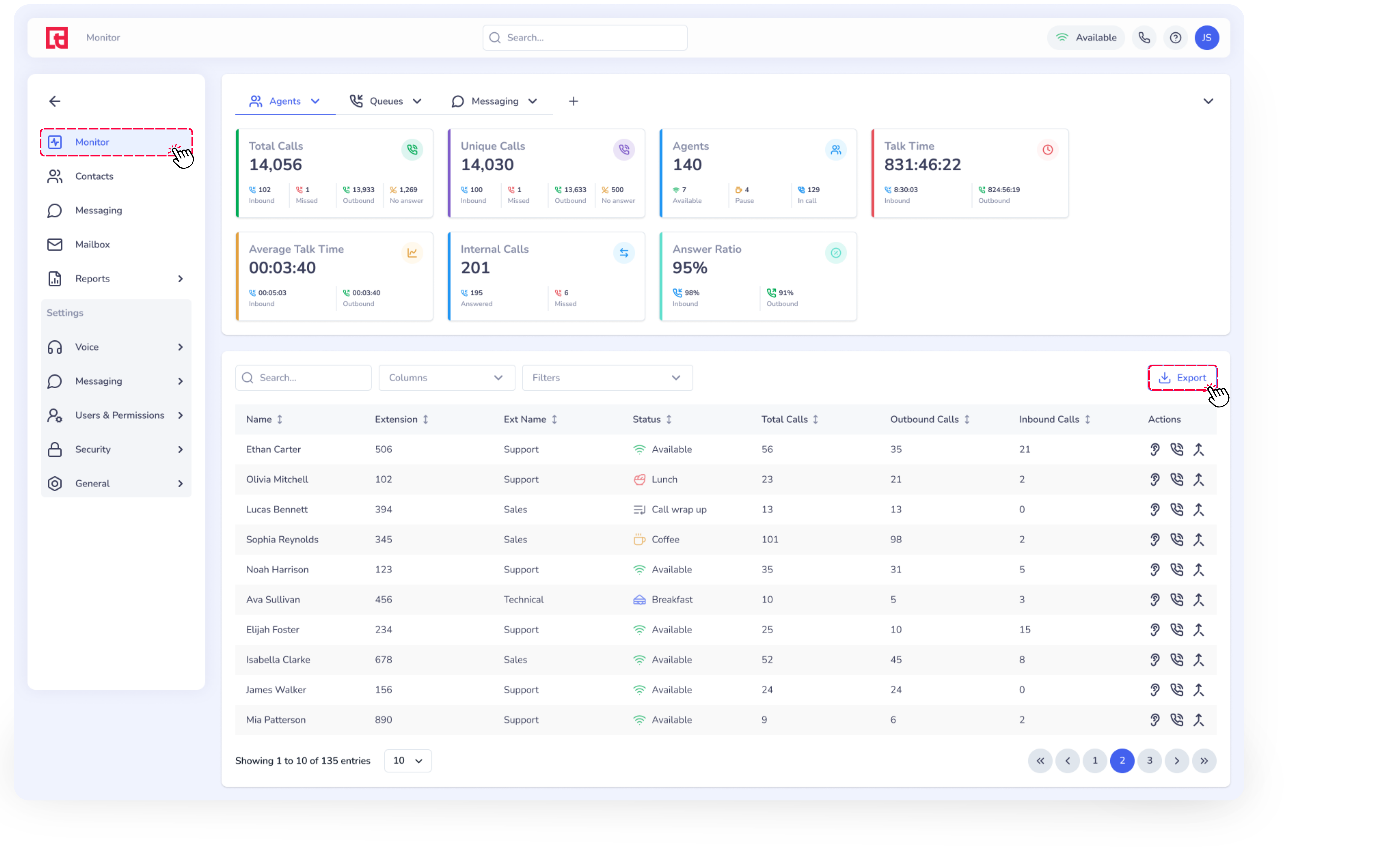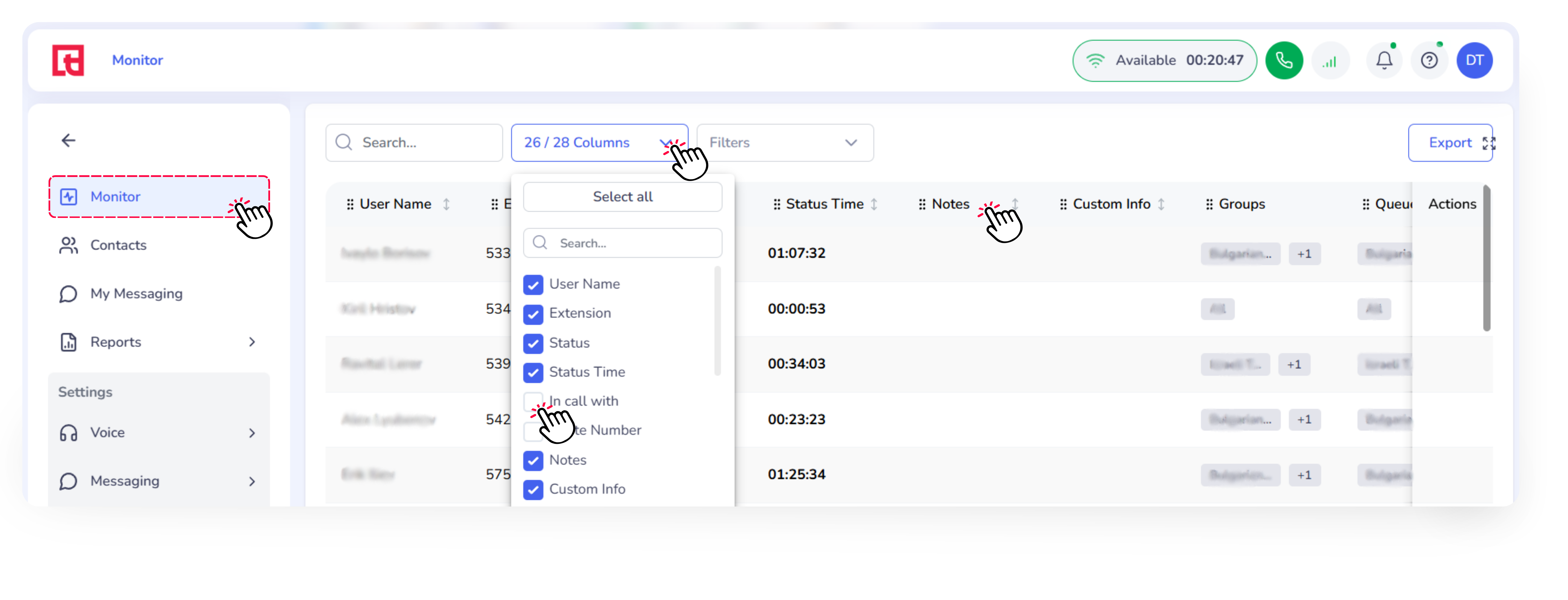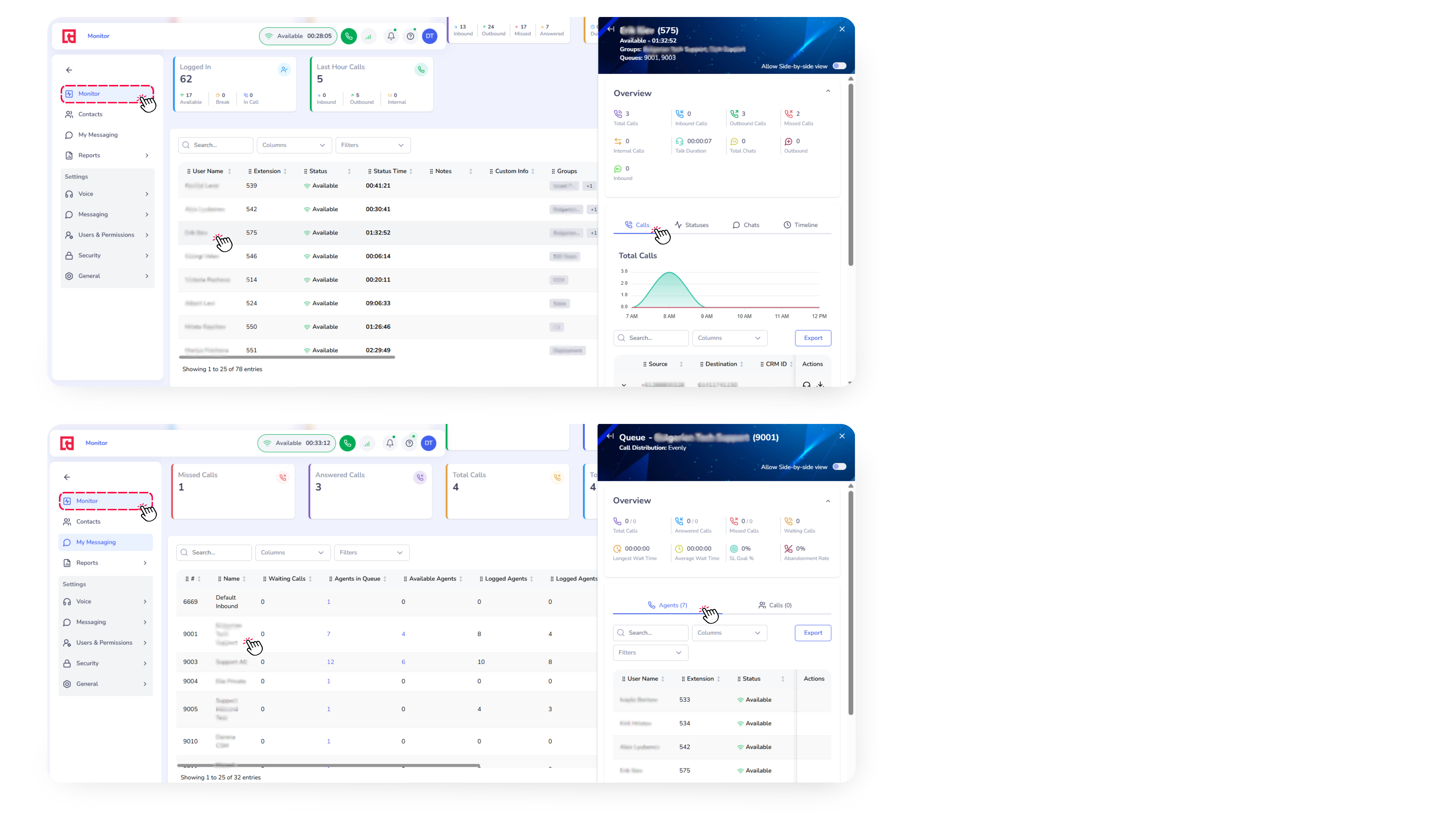 Squaretalk lets you personalize your Monitor tab so you can track exactly what matters: agents, queues, or messaging performance.