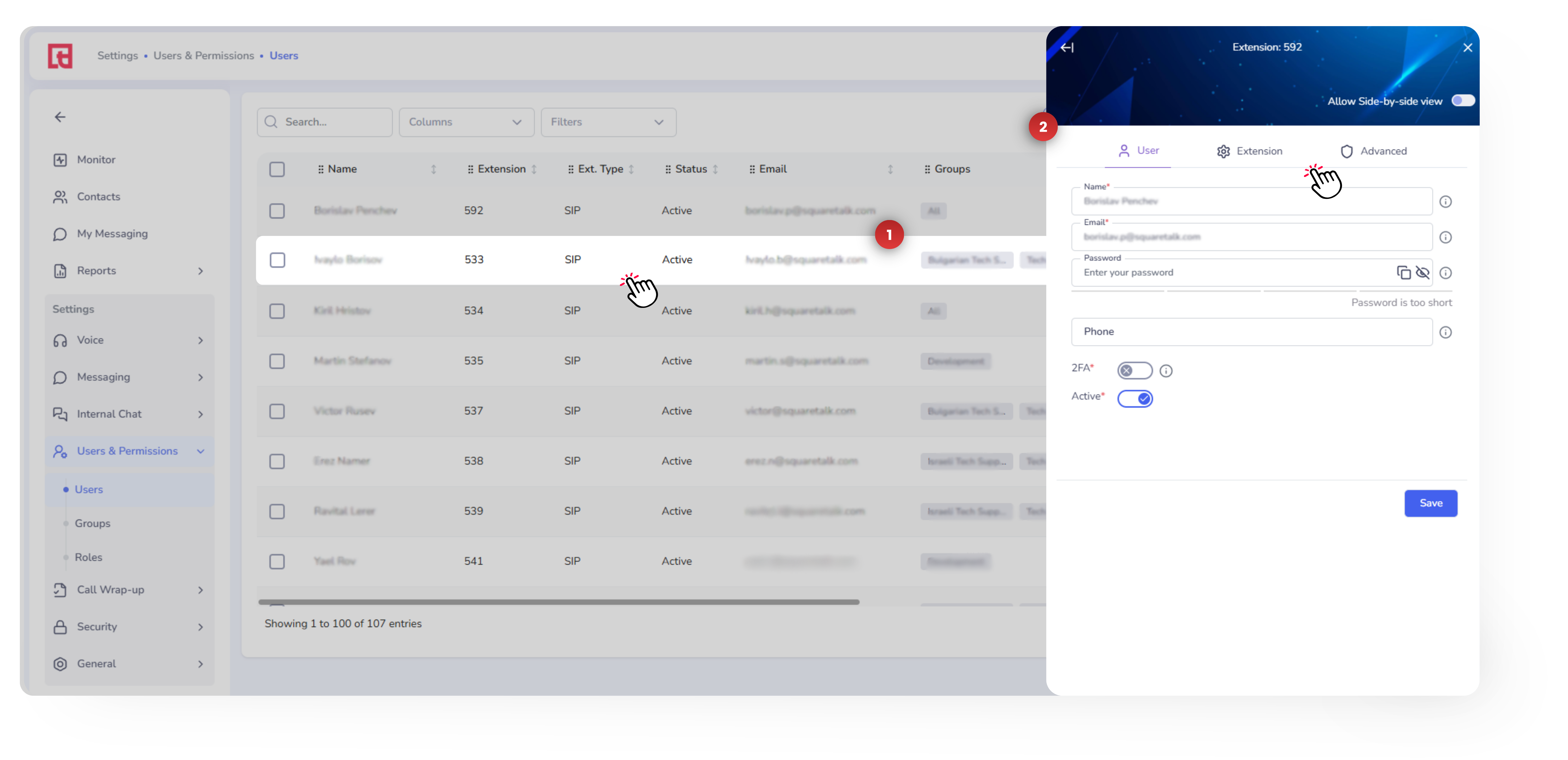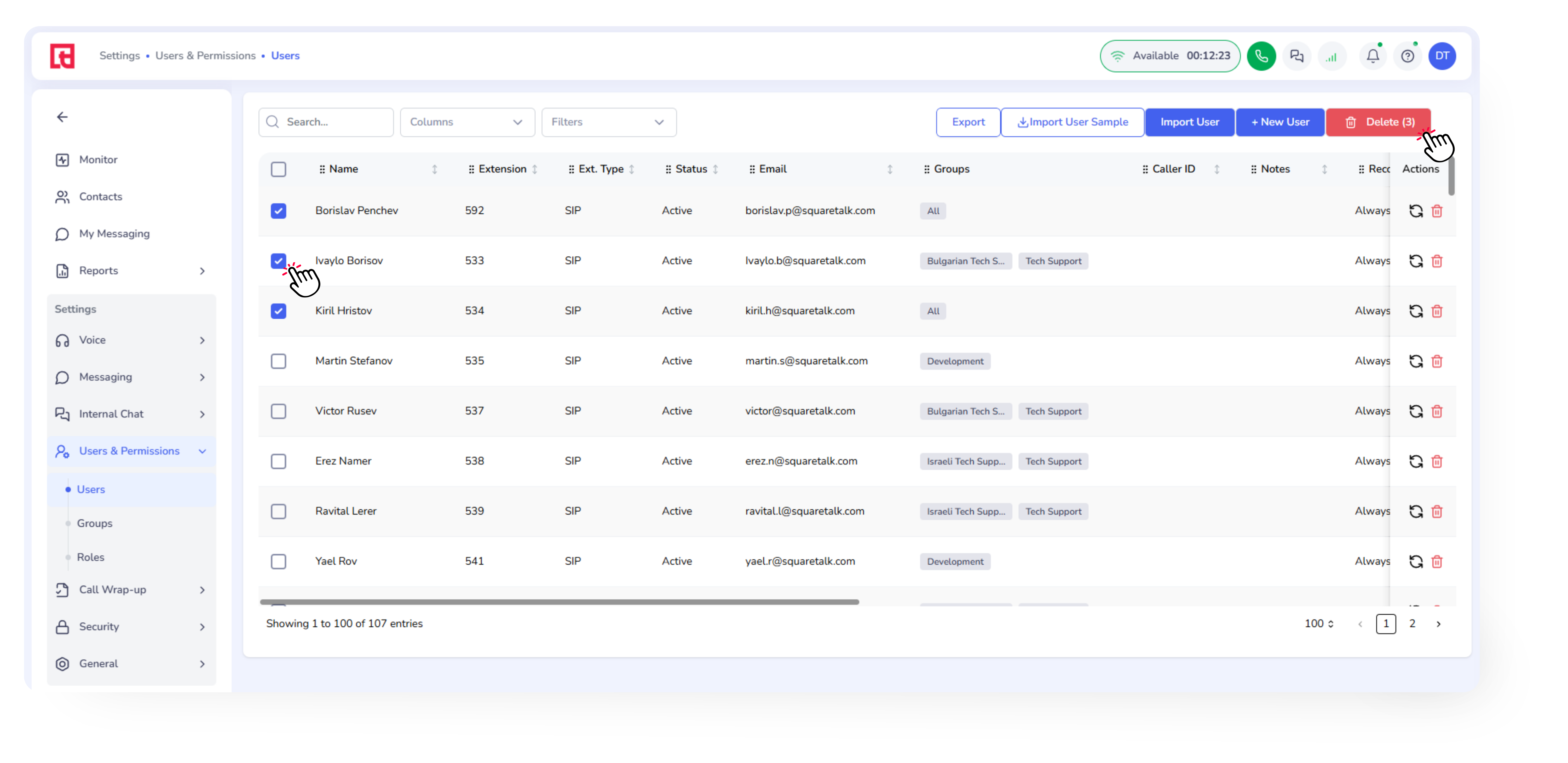 How to Create a User To give someone access to the Squaretalk Platform, you need to create a User profile. Each user is automatically assigned an Extension during setup, so you no longer need to create extensions separately. This guide explains how ...