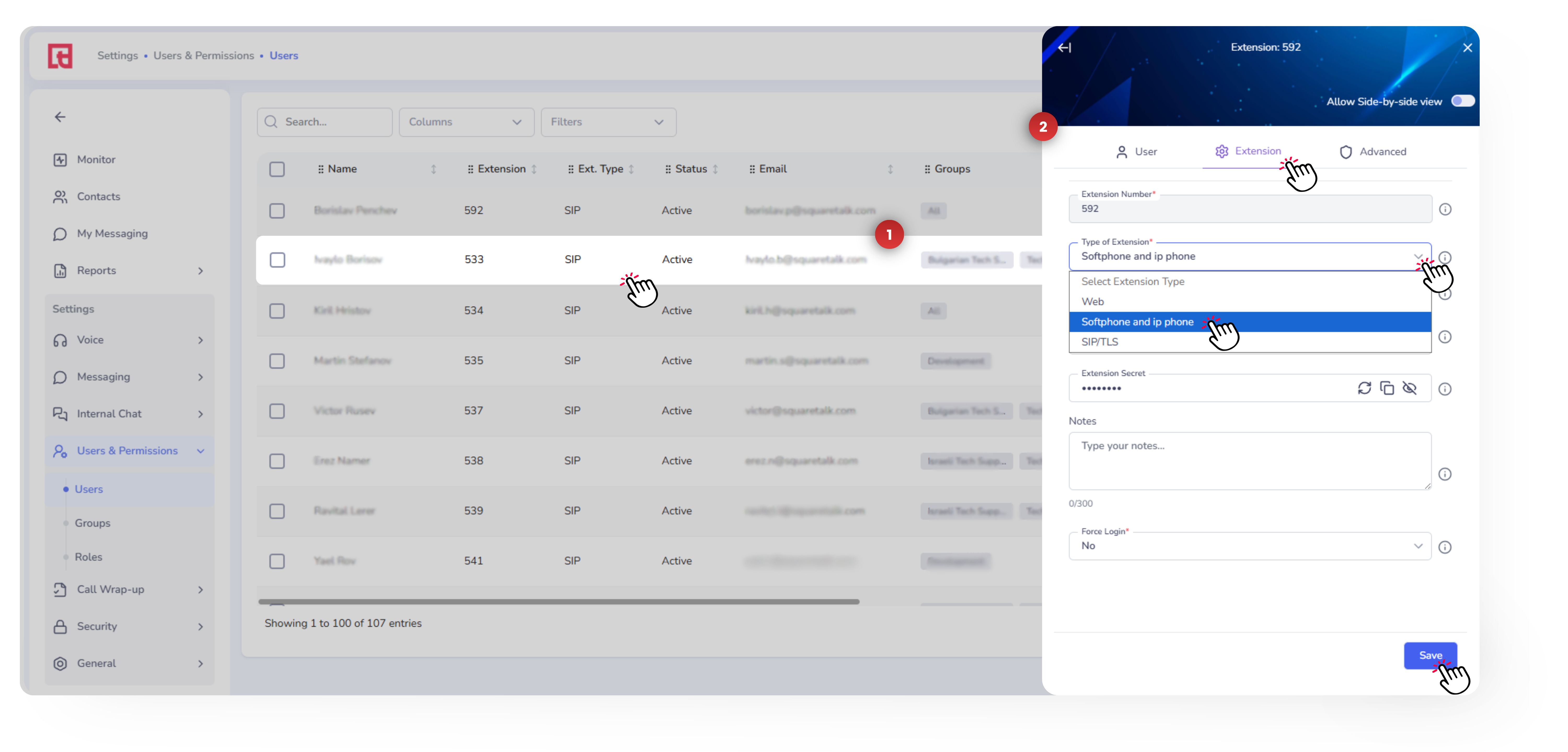 How to Change and View an Extension’s Password (Secret) Each SIP or SIP/TLS extension in the Squaretalk Platform includes a unique password used to connect external devices such as softphones or desk phones. If an agent changes devices, forgets their ...
