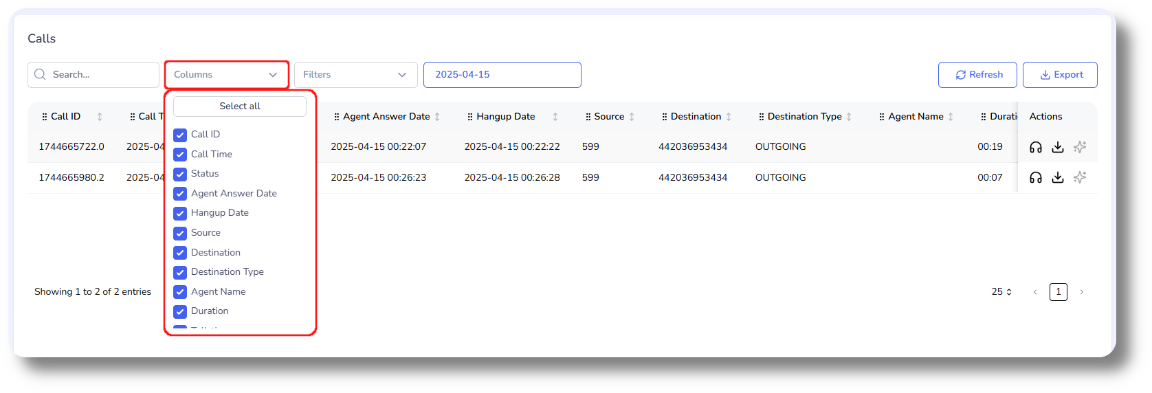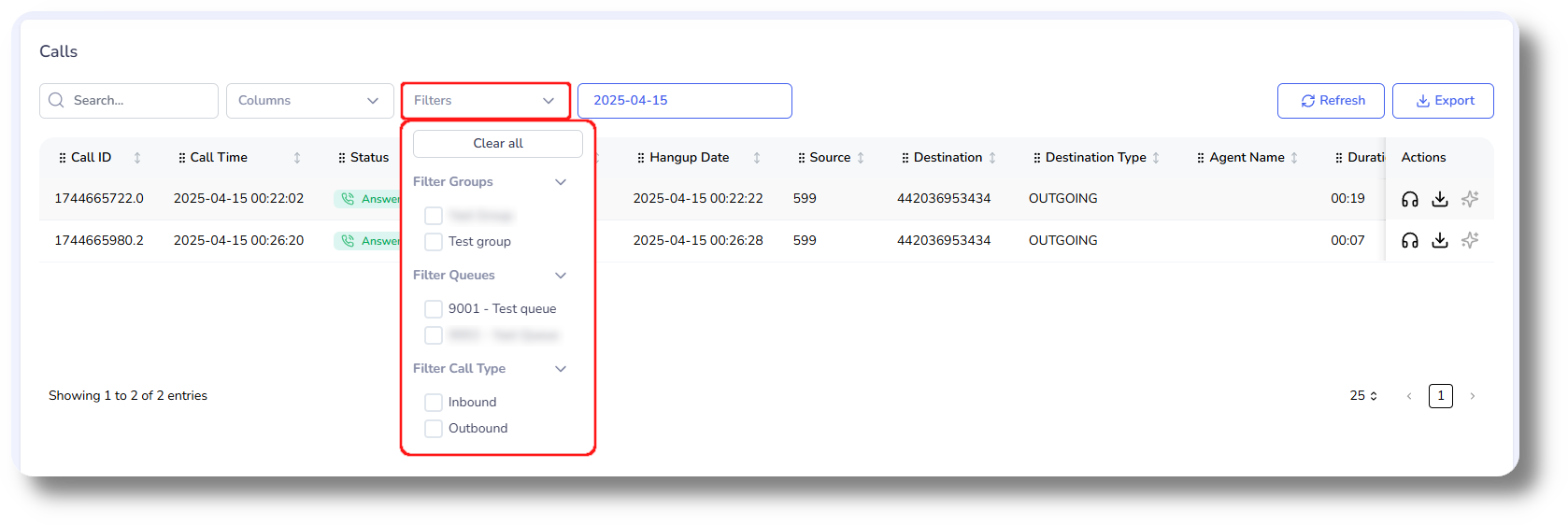 This article will provide you a general overview of the functionalities for the Calls Report.