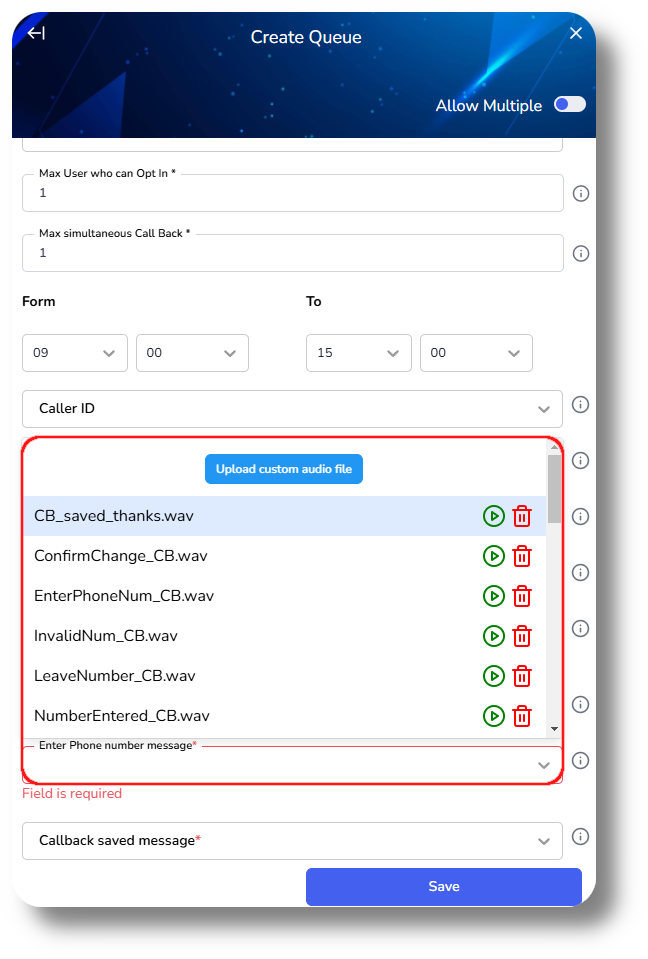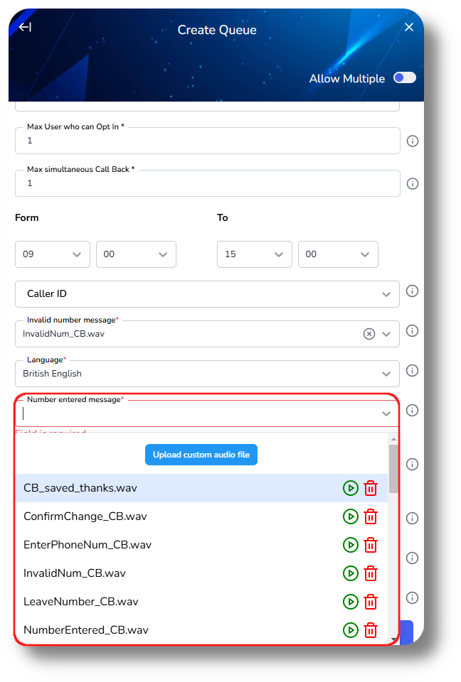 23. Click the "Max Client On Hold" field to specify how many people will be on hold and can get a call back: