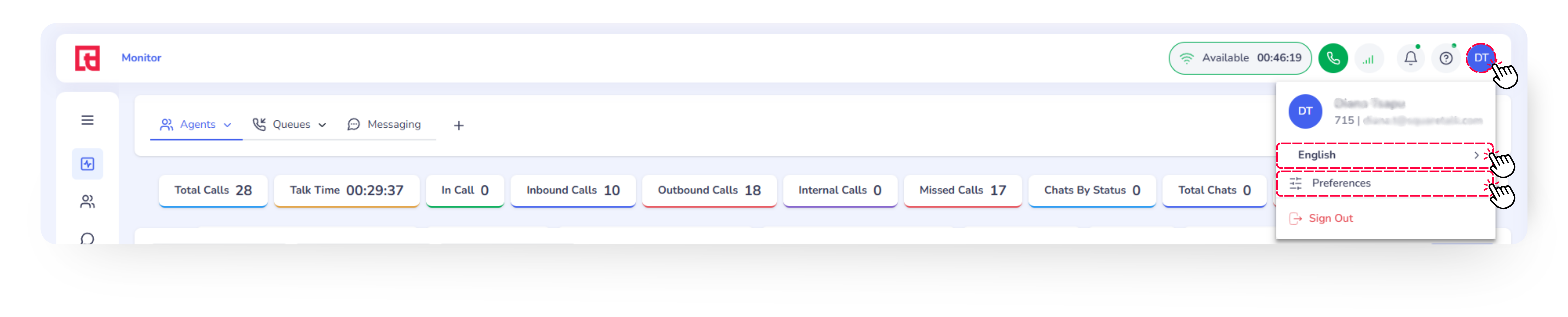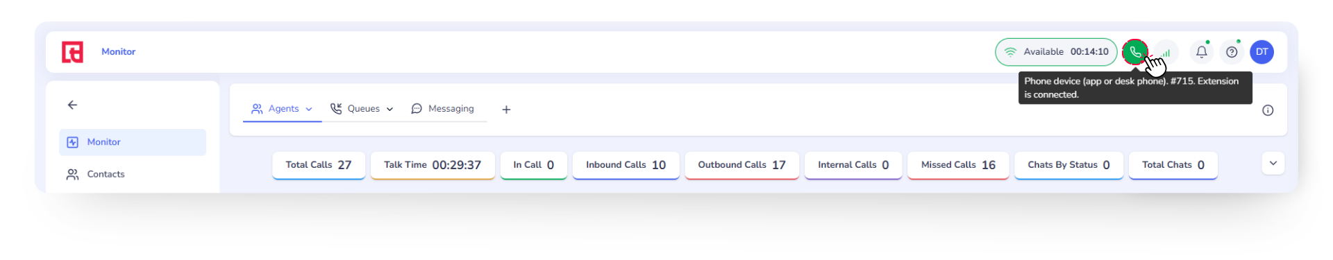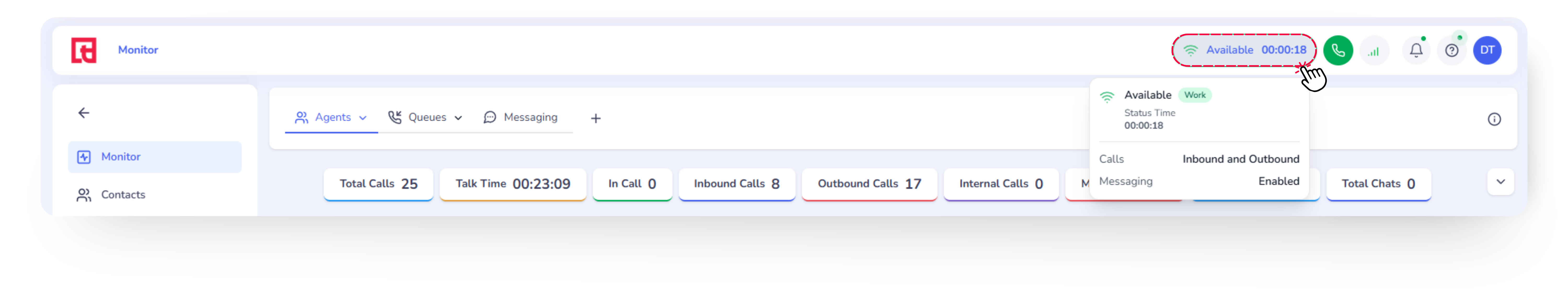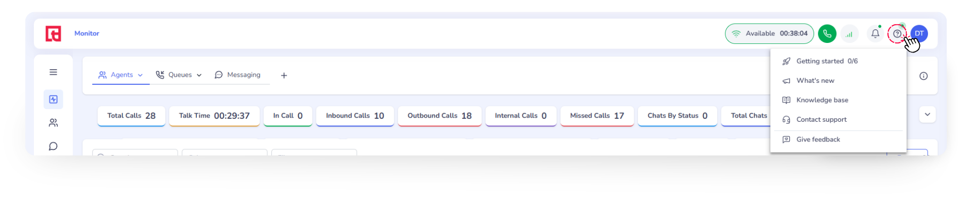 Before you start making calls, handling chats, or managing your team, it’s worth getting familiar with your Top Bar. It’s always visible and gives you quick access to the tools you’ll use every day.
