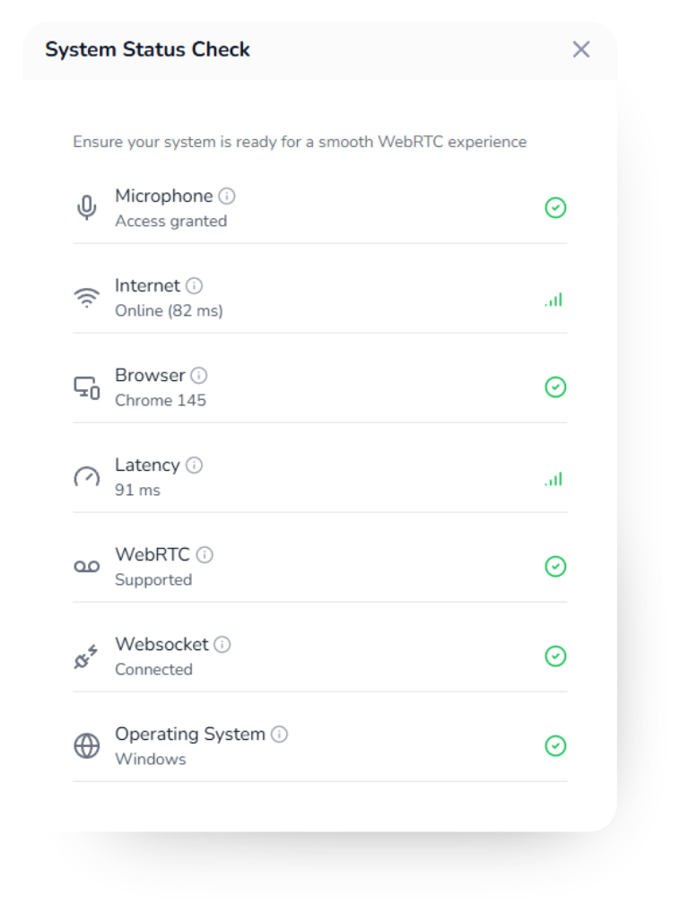 3. System Check button shows your current system latency and helps you quickly check if your setup is working properly (internet, microphone, operating system, etc.)