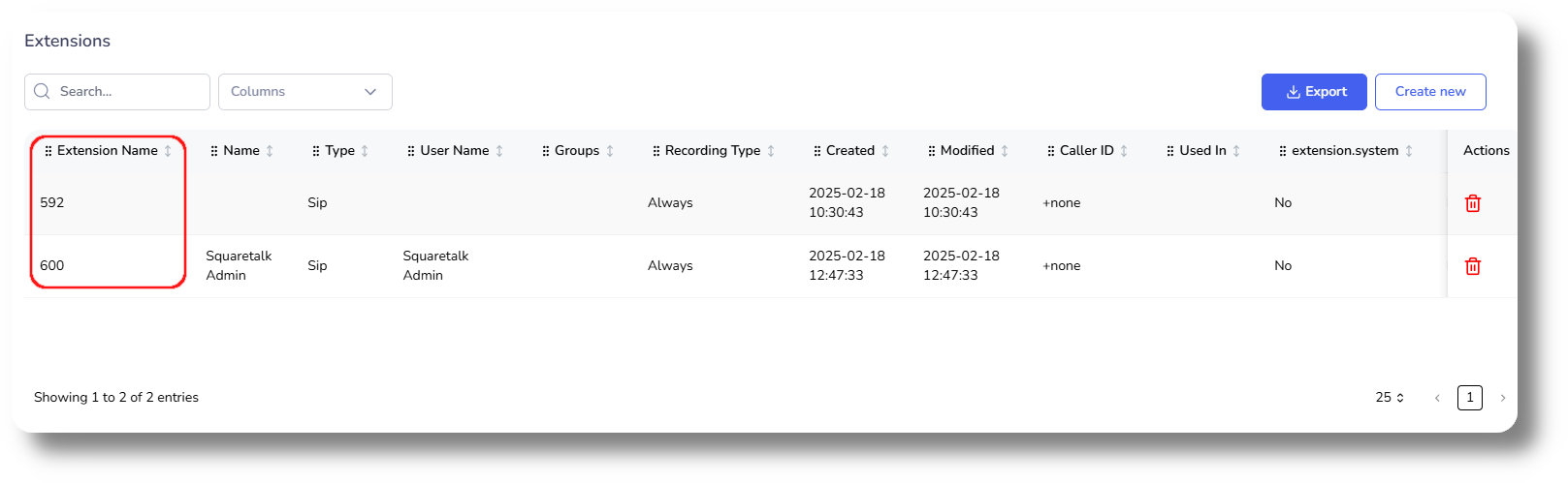 5. To connect an extensions voice mail and use it to a Queue, navigate to the Voice Queuessection and click on the respective queue