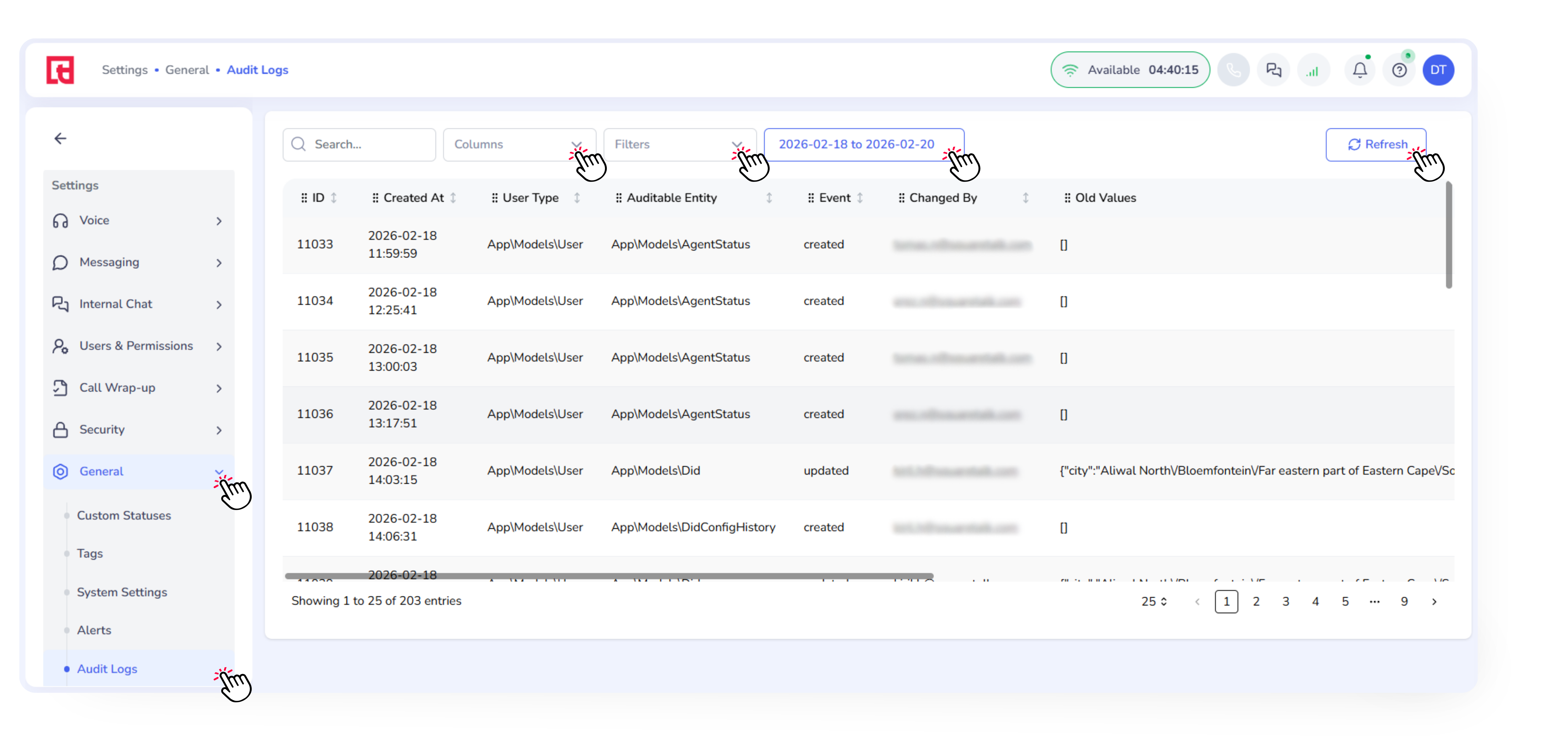 Audit Logs in the Squaretalk Platform allow admins to track important activity across the platform. They are essential for troubleshooting issues, monitoring security events, and keeping visibility over system changes.