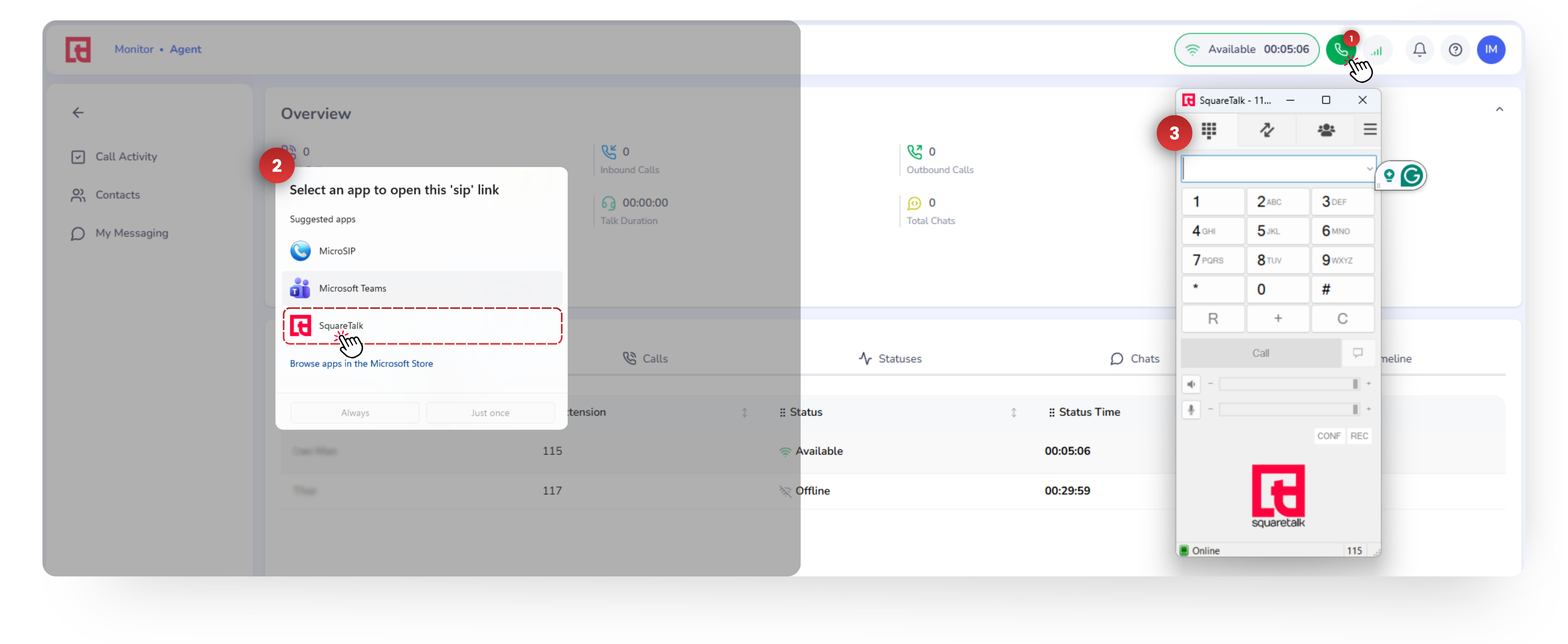 What happens when you click it: - Web extension → Opens the Webphone directly inside Squaretalk