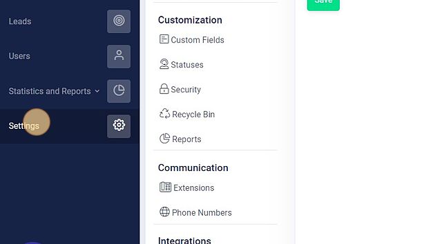 1. לחץ על "הגדרות" בצד שמאל של המטריקס שלך כדי לנווט לכרטיסיית ההגדרות.