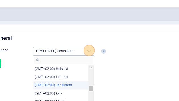 3. בעמוד זה תוכל לבחור את אזור הזמן של השרת שלך. נ.ב: זה לא משפיע על הערכים הנוכחיים במסד הנתונים, ערכי התאריך-שעה מאוחסנים ב-UTC. ערכי התאריך-שעה (דוחות, צגים...) יופיעו בהתבסס על ההגדרות המקומיות של המשתמש. זה קשור רק לשיחות נכנסות.