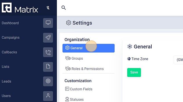 2. לחץ על "כללי" כדי לנווט להגדרות הכלליות של הארגון שלך.