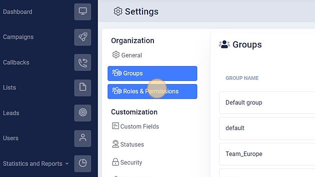 12. לחץ על "תפקידים והרשאות" כדי לנווט לכרטיסיית הגדרות התפקיד וההרשאות.