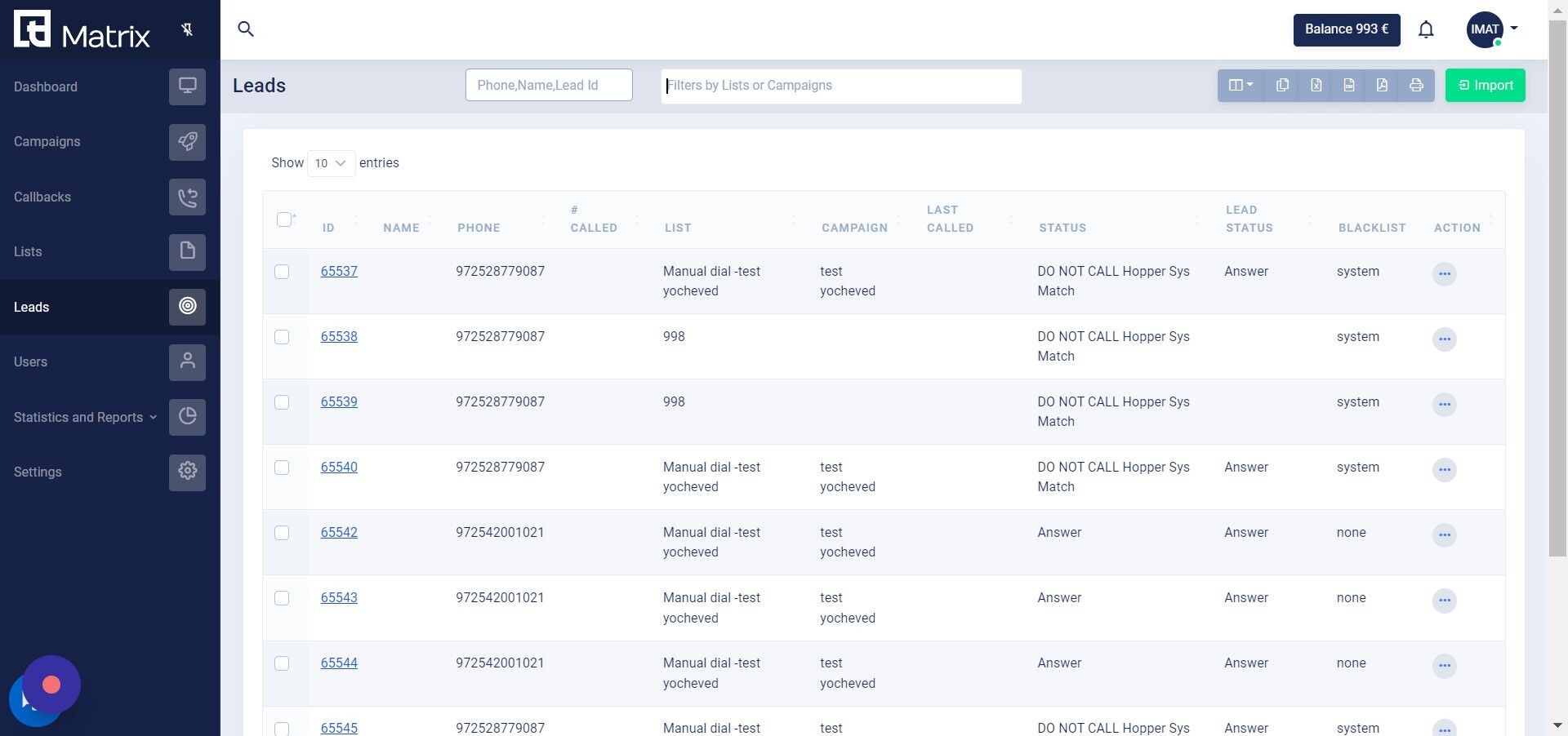 4. לחץ על "ייבוא" כדי לייבא רשימת לידים.