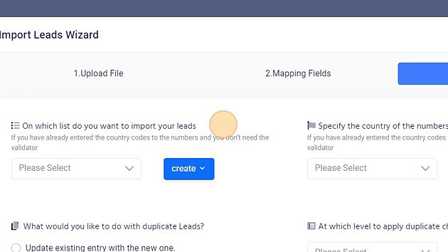 1. בחר באיזו רשימה ברצונך לייבא את הלידים שלך. אתה יכול לבחור רשימה ישנה שכבר נוצרה או ליצור רשימת לידים חדשה ולהעלות את הרשימה אליה.