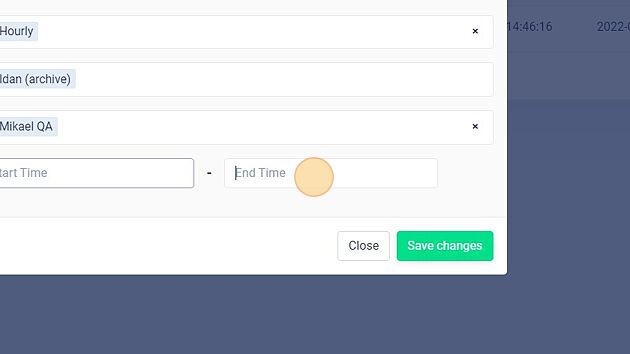 14. לחץ על השדה "זמן סיום" כדי להזין שעת סיום של המסגרת.