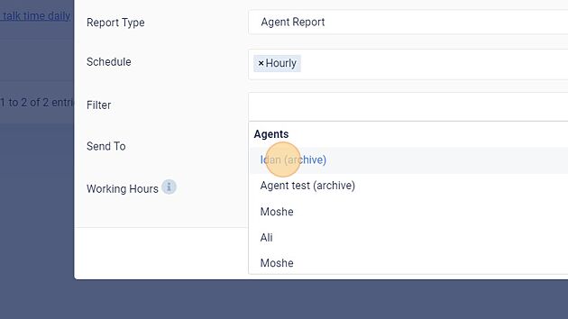 7. לחץ על "סוג דוח" כדי לבחור בין דוח סוכן או דוח היסטוריית שיחות.