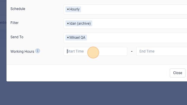 8. לחץ על "תזמון" כדי לבחור את תדירות הזמן של כלל הדיווח. זה יקבע באיזו תדירות המשתמש יקבל את הדוח.